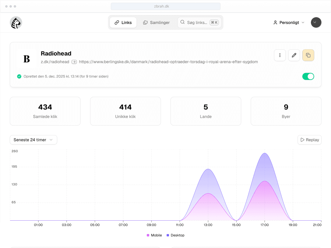 - Create short links using the shortest TLD available - z.dk