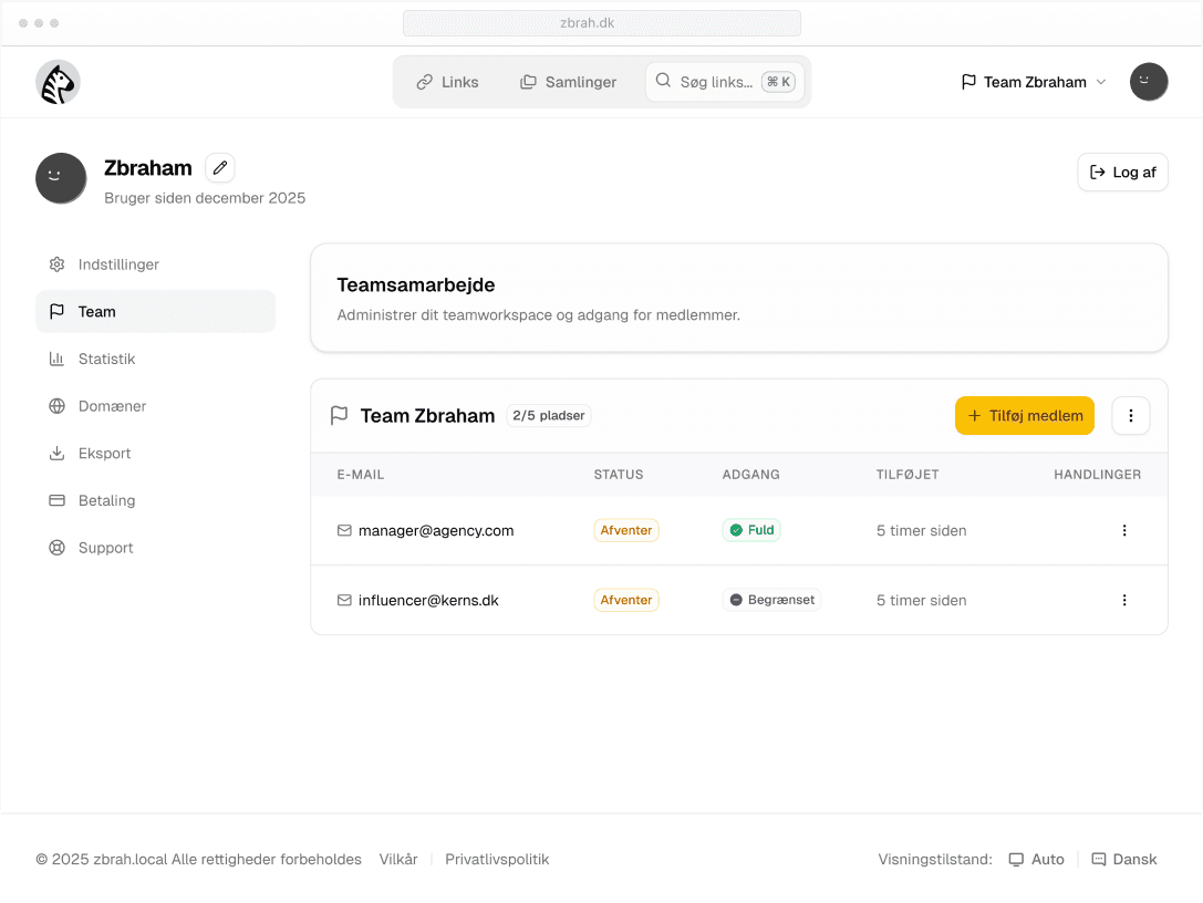 - Create short links using the shortest TLD available - z.dk